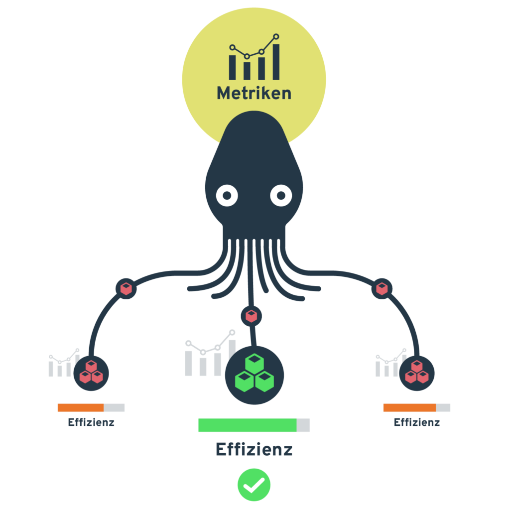 Krake überwacht kontinuierlich die Metriken und passt die Platzierung der Workloads bei Bedarf automatisch an – für optimale Performance und Ressourcennutzung.